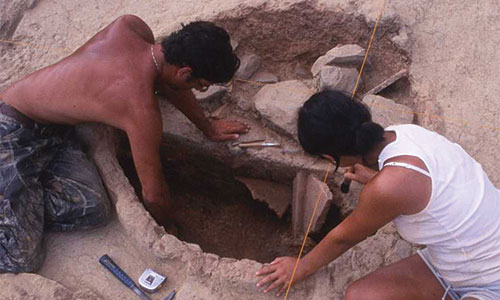 Dig at La Piana (1997)Malignano (Poggio Luco), 1964, directed by the late Prof. Kyle Phillips, then at the University of Michigan, later at Bryn Mawr College. The excavation of this Late Etruscan cemetery exposed one impressive chamber tomb and 18 smaller rock-cut tombs. All had been robbed in antiquity except for a few of the interior chambers, which yielded fragments of over 80 vessels and 52 coins. These coins indicate a period of use for the cemetery from the last quarter of the third century B.C. to the end of the second century B.C., a period of peace and development for the entire peninsula, between the expulsion of Hannibal from Italy and the first civil war between Marius and Sulla. This excavation led to Prof. Phillips’ historical reconstruction of the life of the Etruscan settlement served by these tombs.